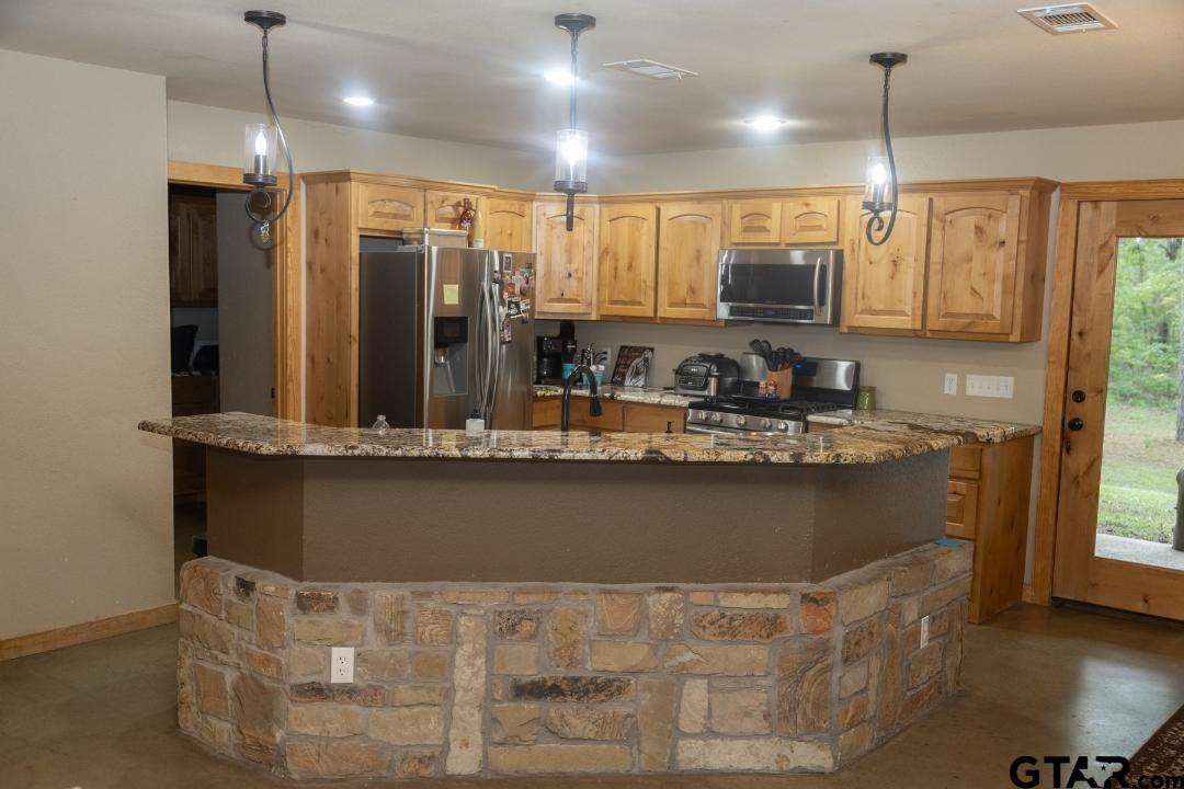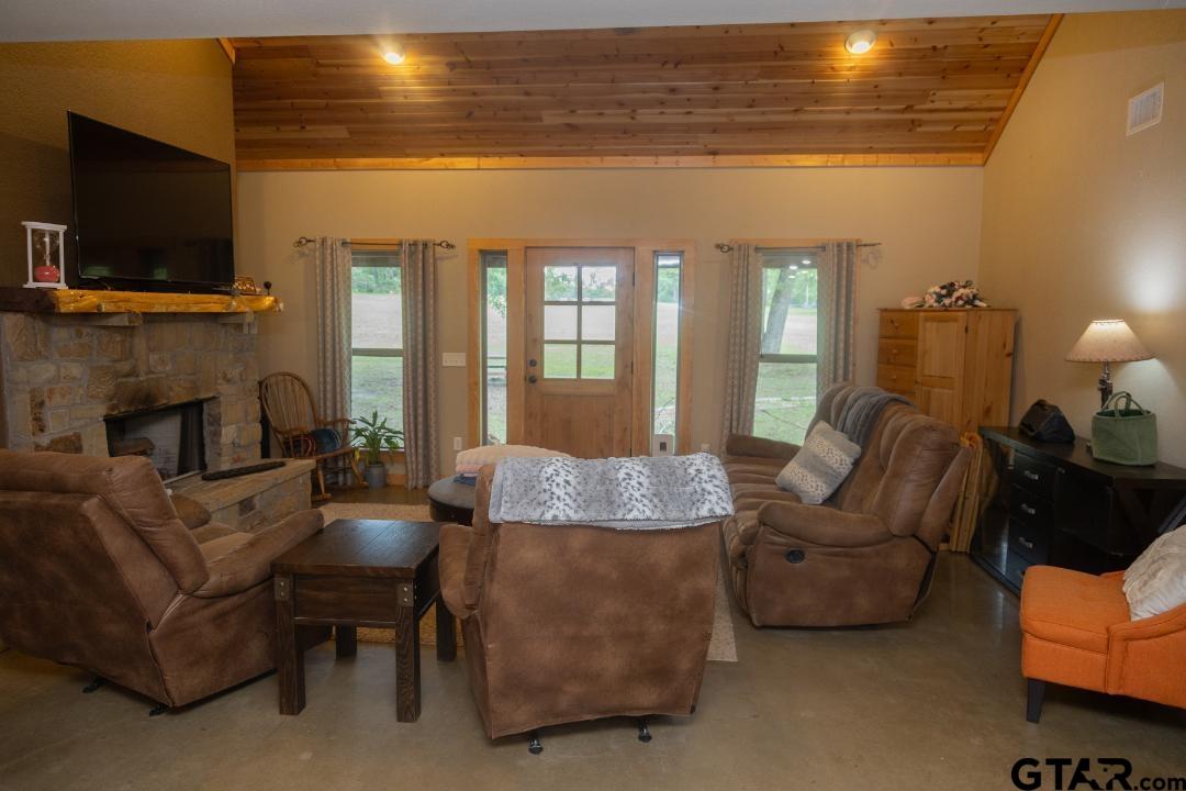 Live just outside of Chandler on 10 acres! Privacy and serenity abounds on this beautiful tract of land. Enjoy walking in the woods, the fire pit area, and the super swimming pool. Den, dining and kitchen area are all open to each other with a large fireplace. A loft area overlooks the den offering a second living area. Master is on the ground level and has an additional fireplace. 2nd bedroom is also downstairs and adjoins a full bath. 2 good size bedrooms and another full bath are on the second level. Plenty of room both inside and outside to enjoy. Make it yours today.